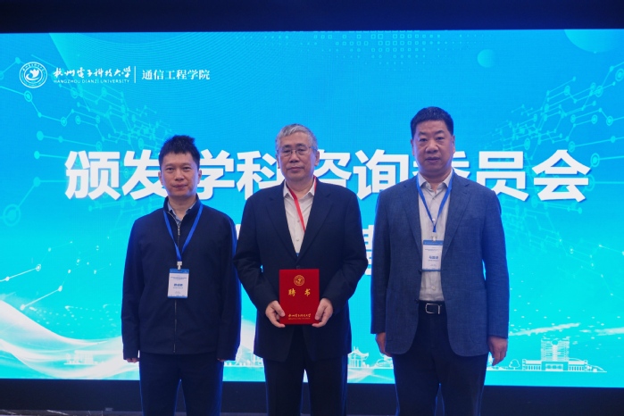 马国进与颜成钢向张平院士颁发学科咨询委员会主任聘书,颜成钢向与会专家颁发学科咨询委员会委员聘书。