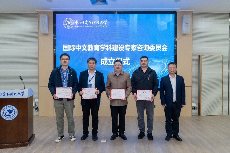 我校的国际中文教育发展始终围绕学校的优势学科,聚焦中文国际推广,赋能学校的国际化办学。为更好地探索有杭电属性的“智慧中文”教育。人文艺术与数字媒体学院、法学院组建了国际中文教育学科建设专家咨询委员会,聘请国家语言文字工作委员会海外华语研究中心主任、暨南大学郭熙教授为国际中文教育学科咨询委员会主任,南京大学海外教育学院副院长曹贤文教授为副主任,咨询委员会委员包括教育部高等教育中文类教学指导委员会委员、上海外国语大学吴春相教授,北京语言大学语言资源高精尖创新中心主任、语言智能研究院院长荀恩东教授,学校融媒体与主题出版研究院院长、二级教授韩建民,学校“力行学者”、二级教授王轻鸿。专家咨询委员会成立仪式由人艺数法学院党委书记冯瑛主持。