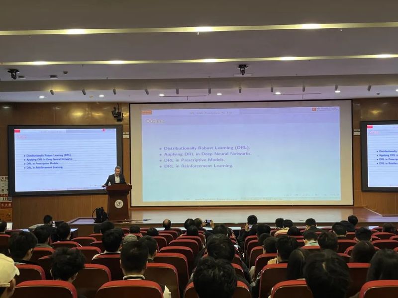 本次讲座,Ioannis (Yannis) Paschalidis教授做了关于Distributionally Robust Learning – From Traditional to Deep and to Reinforcement Learning专题报告。Paschalidis教授介绍了一种用于机器学习的分布式鲁棒优化方法,该方法使用可用于分类或回归的一般损失函数。受医学应用的启发,考虑了一种训练数据可能被(未知)异常值污染的环境。鲁棒学习问题被表述为,在一系列接近训练数据诱导经验分布的最小化最坏情况预期损失问题。报告探讨了这种方法的普遍性、鲁棒性、解释一系列正则化学习方法的能力。此外,Paschalidis教授还分享了如何将分布式鲁棒学习用于深度神经网络分类,并考虑其在计算机视觉中的应用;介绍了如何将该框架用于强化学习,解决约束马尔可夫决策过程问题的鲁棒变体,并将其应用于机器人控制和自主系统。