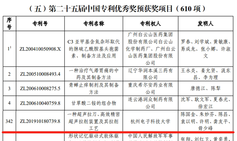 中国专利奖是我国唯一的专门对授予专利权的发明创造给予奖励的政府部门奖,也是我国专利领域的最高奖项。该奖项主要聚焦重点产业和关键领域核心技术,突出制造业的“大国重器”,解决“卡脖子”的技术难题,体现了行业的最高科技水平。评奖标准不仅包含专利文本撰写质量、专利技术先进性和创新高度,也注重其在市场转化过程的运用及效益情况,并且对其保护状况和管理情况提出要求,获奖难度大。