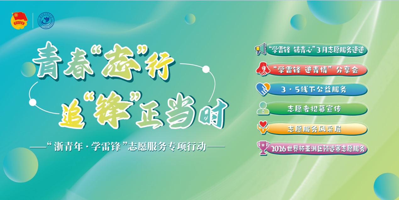 简介:【浙青年·学雷锋】“青春‘志’行 追‘锋’正当时”志愿服务专项行动,涵括志愿服务项目大赛,2026世界杯亚洲区预选赛志愿服务,志愿服务经验讲座、分享会,志愿服务风采展等多个项目。3月5日当天将在学生活动中心西侧开展线下公益服务和志愿者现场招募。