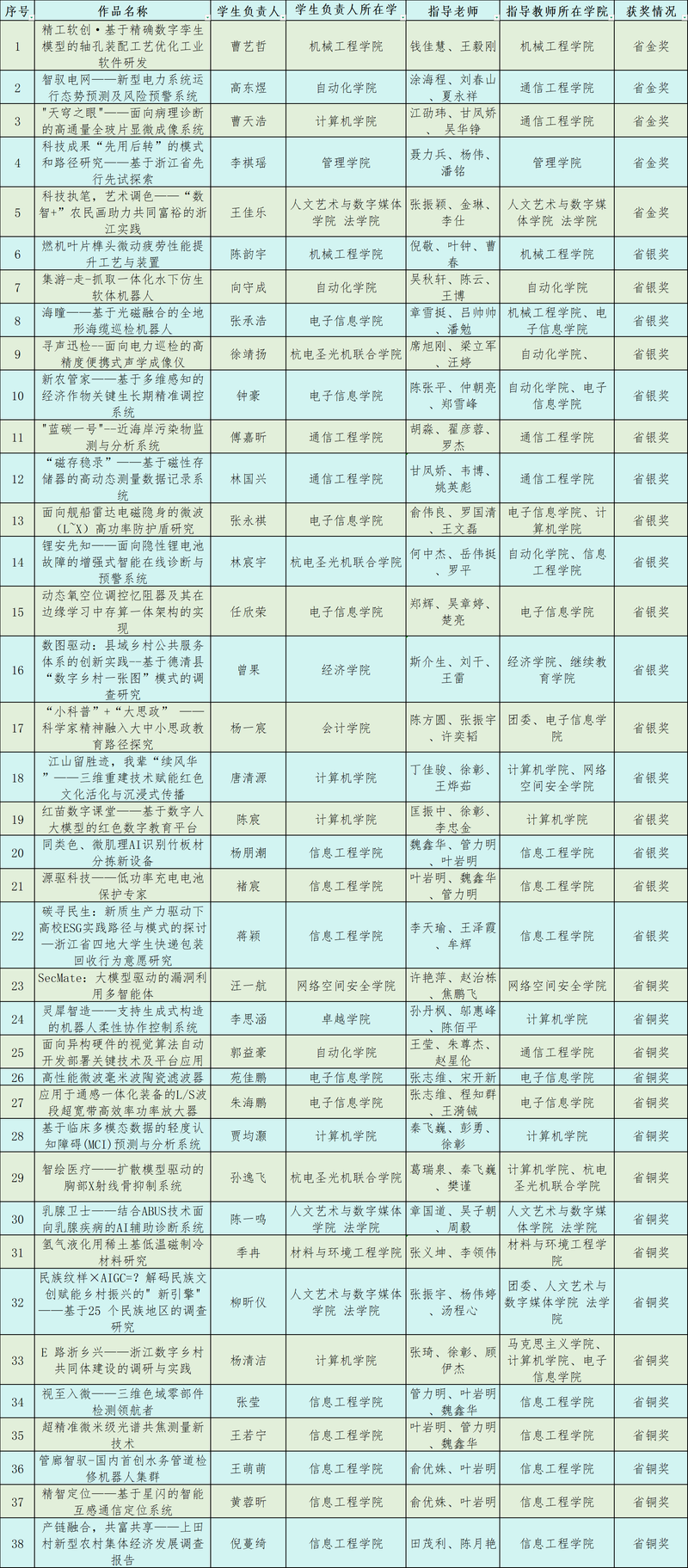 5月18日,由共青团浙江省委、浙江省教育厅、浙江省社会科学院、浙江省科学技术协会和浙江省学生联合会联合主办,浙江中医药大学承办的浙江省第十九届“挑战杯”大学生课外学术科技作品竞赛落下帷幕。本届比赛,全省共有103所高校,2057件作品申报主体赛省级复赛,71所高校的412件作品闯入决赛。我校最终斩获金奖5项、银奖17项(含信息工程学院3项)、铜奖16项(含信息工程学院5项),总获奖数量实现新突破,学校荣获“优秀组织奖”,并首捧“优胜杯”!其中,管理学院推报项目入围本届大赛优秀作品公开答辩展示(全省13件作品)。