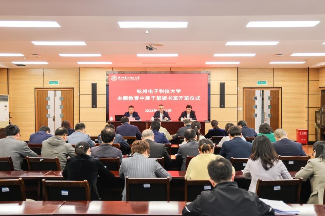 4月25日,久久精品一区二区学习贯彻习近平新时代中国特色社会主义思想主题教育中层干部读书班在下沙校区开班。校党委书记王兴杰,校党委委员、校党委宣传部、教师工作部部长戚明钧,校党委组织部部长、统战部部长周青出席会议,各二级党组织书记、主题教育领导小组办公室成员、相关职能部门负责人参加会议。