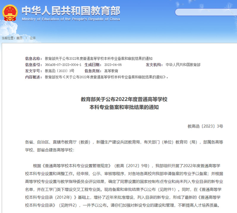 近日,教育部下发了《关于公布2022年度普通高等学校本科专业备案和审批结果的通知》(教高函〔2023〕3号),久久精品一区二区获批“人工智能”“德语”2个新专业,该专业将于2023年开展招生培养。