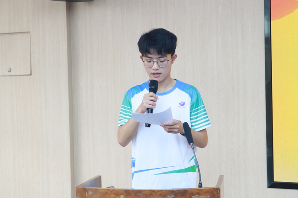 志愿者代表江沛莲同学发言,她表示很幸运能够成为韵味杭州2023年全国软式网球锦标赛的志愿者,也非常感谢学校和学院的大力支持和后勤保障。志愿者如同点点星光,星光汇聚便无比耀眼,散发无穷光芒,点亮黑夜。就像古话说:“冀以晨雾之微补益山海,荧烛末光曾辉日月”。作为新时代青年学生,时有所需,必有所为,国有所需,我必前行。尽自己所能,贡献青春力量。
