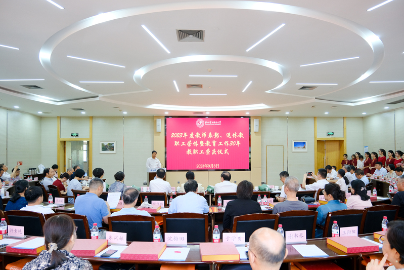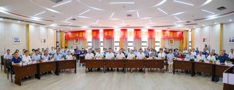 金秋九月,致敬芳华。在第39个教师节来临之际,为表彰鼓励在教育工作中涌现出的先进个人,向为学校发展作出贡献的退休教师和从教30年的教师致以崇高敬意,大力营造尊师重教、爱岗敬业、潜心育人、争先创优的优良氛围,9月8日下午,我校在科技馆二楼扇形会议室举行2023年度教师表彰、退休教职工荣休暨教育工作30年教职工荣庆仪式。校长朱泽飞、党委副书记钱波、副校长马国进、党委副书记戚明钧出席仪式。2023年度厅局级以上荣誉教师代表、退休教职工代表、教育工作30年教职工代表、学校办公室、教师工作部、人事处、离退休处、工会负责人参加仪式。会议由副校长马国进主持。