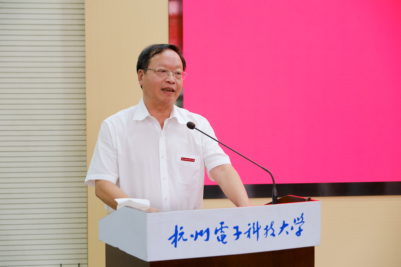 网络空间安全学院陈临强教授作为退休教师代表发言,他饱含深情地回顾了在学校工作36年间的峥嵘岁月,几度哽咽。36年间他见证了学校多领域多方位的飞速发展,感慨杭电就像一辆高速前进的高铁列车,为能在杭电工作而感到十分骄傲,并向学校送上最真挚的祝福。
