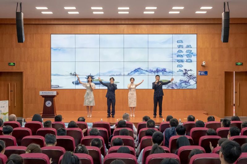 《诗“话”清风,歌“颂”廉洁》师生朗诵合唱节目以古诗朗诵为主体采用古今对话的形式引导广大党员、干部和全校师生从中国传统文化中汲取清廉力量,以合唱曲目《永远在路上》传递清廉之声。