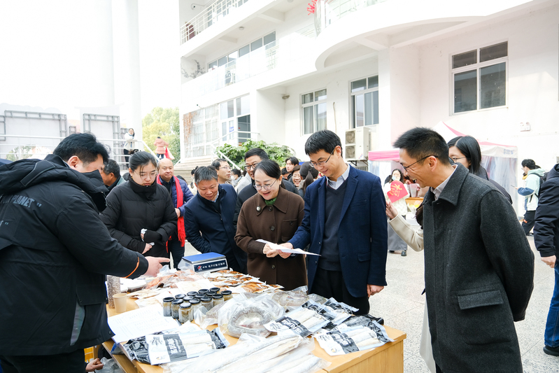 年货节第一天,校党委书记吴卿、党委副书记钱波、纪委书记任蔚青、副校长周青和相关部门负责人来到活动现场,询问了解参展企业产品和销售情况,并现场挑选购买年货。