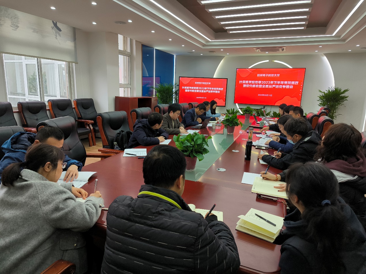 为进一步贯彻落实全面从严治党战略方针,推进党风廉政建设,进一步加强计算机学院党委领导班子党风廉政建设暨全面从严治党主体责任,根据学校统一部署,3月11日上午,计算机学院召开2023年下半年党委领导班子党风廉政建设分析会暨全面从严治党专题会议。校纪检监察室主任张武标出席会议并讲话,学校党委委员、组织部部长、学院党委书记孔万增主持,学院党政领导班子、党委委员、科级干部、纪委委员、党风党纪监督员参加。