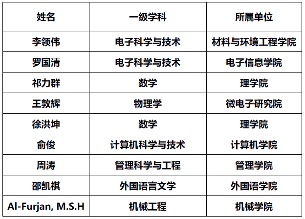 我校上榜学者共涉及7个教育部一级学科,其中数学和电子科学与技术各上榜2人,机械工程、外国语言文学、物理学、计算机科学与技术、管理科学与工程各上榜1人。