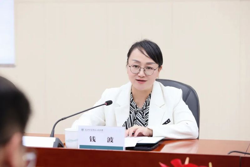 钱波在仪式上讲话。她表示,杭电与江南中学签约共建,既是当下高质量发展的迫切需要,也是着眼于未来战略的长远考量。她强调,合作共建附校要凝聚共识,依托“在杭电 看见数字科技”的理念,努力打造附中建设的“杭电样板”;要合力协同,建立“大学-中学”一贯式电子信息类拔尖人才培养机制,高质量办好杭电科创班,聚焦信奥竞赛建立学科竞赛联合培养平台;要共建共享,依托附校建设以附属,拓展与富阳区政府的合作,引导师生深度参与富阳的人才引育、科技成果转化推广,助力富阳产业转型升级。