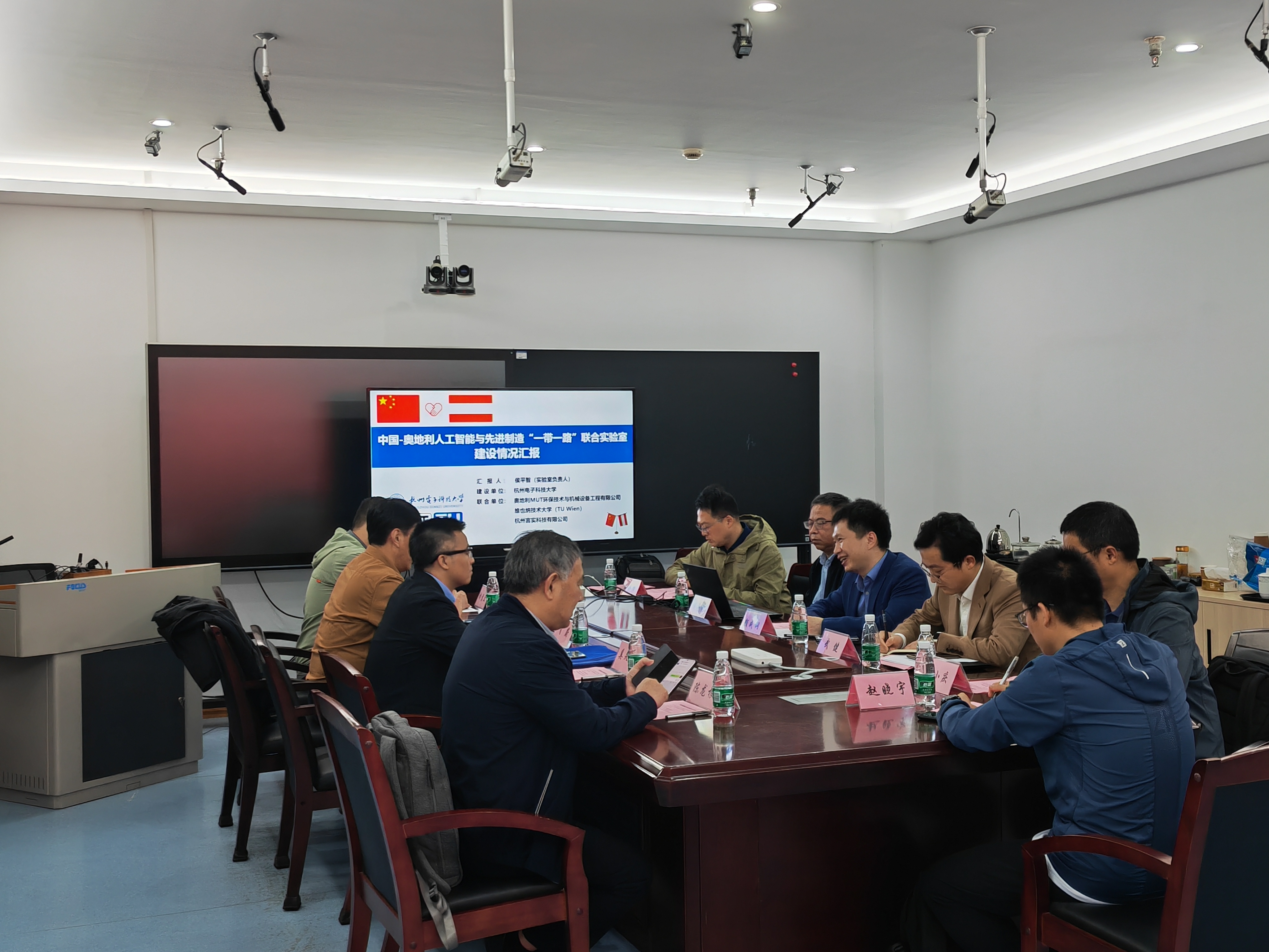 调研会议在文一校区召开,与会领导有科技部国际合作司亚非处处长肖蔚,科技部国际合作司亚非处三级调研员李鸿炜,浙江省科技厅科技合作处一级调研员陈龙根、胡意立,我校副校长颜成钢,国际交流合作处处长武建,中国-奥地利人工智能与先进制造“一带一路”联合实验室主任侯平智、副主任徐晓滨,产学研融合发展中心副主任熊小庆。杭电科研处助理赵晓宇,以及中奥联合实验室相关技术骨干和老师们参会。