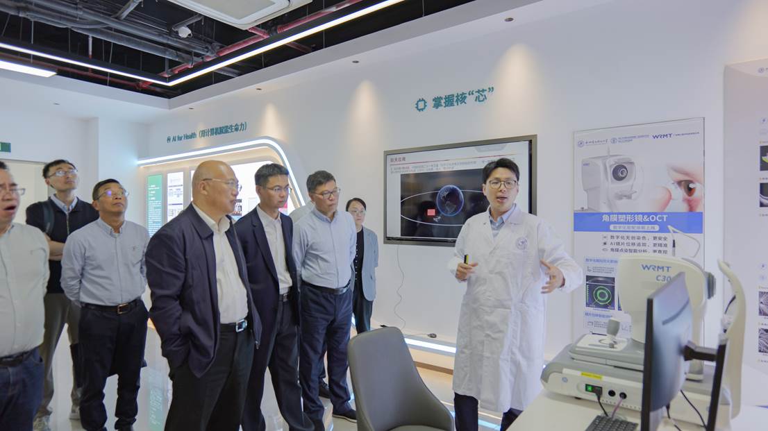 座谈会前,孟刚一行考察了我校微电子研究院、自主智算与数字诊疗系统实验室,参观了“在杭电看见数字科技”展。
