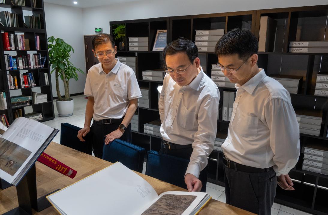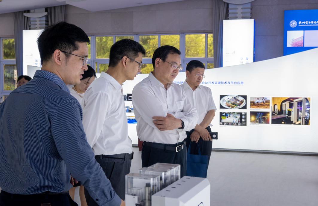 王广兵一行实地考察了杭电文库,参观了“在杭电看见数字科技”展,听取了学校发展情况介绍,对杭电近年来快速发展所取得的突出成果给予高度肯定。