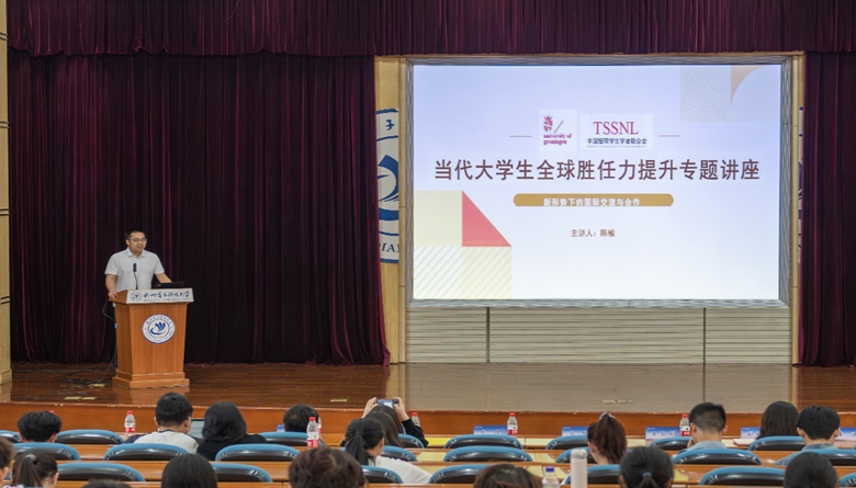讲座伊始,陈榆回顾了本次回国交流的缘起,并从何为新形势、扩大国际朋友圈、新形势下的当代青年这三个主要方面为现场师生呈现了一场精彩纷呈的报告。他阐述了对“新形势”的理解,强调了适应这种新形势的重要性,以便更好地应对全球挑战和机遇,指出应通过建立更广泛、更紧密的国际联系来促进合作。陈榆结合自身经历就当代青年该如何应对复杂的新形势这一问题给出建议,认为当代青年应该具备全球视野和国际胸怀,积极参与到国际交流与合作中去,在这个国际化时代贡献中国智慧。