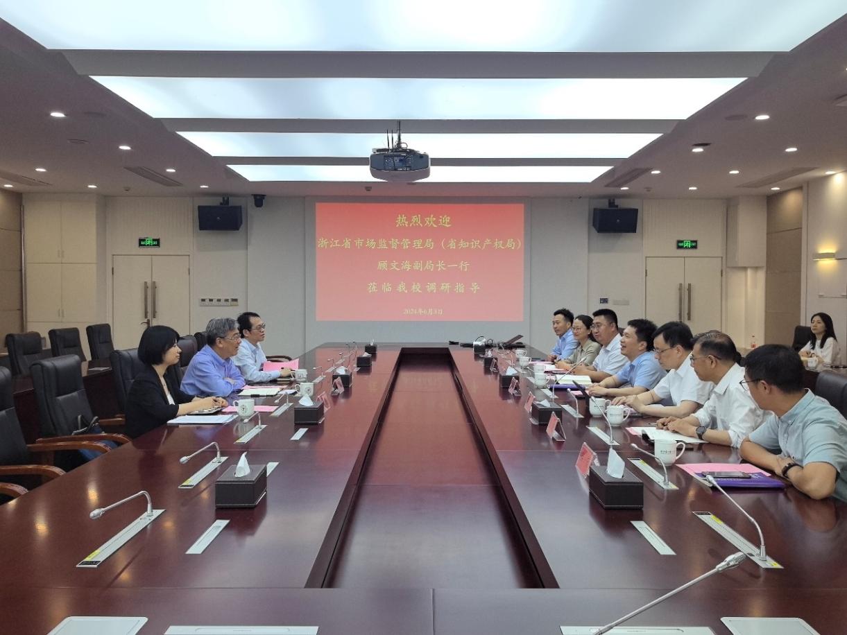 6月3日下午,浙江省市场监督管理局副局长顾文海来校调研知识产权工作。省市场监督管理局知识产权运用促进处处长林敏、副处长马维力等陪同调研。我校副校长颜成钢,省人大常委会委员,杭电生物三维打印与医疗器械研究院院长徐铭恩出席会议。产学研融合发展中心、图书馆、经济学院等相关部门负责人参加会议。