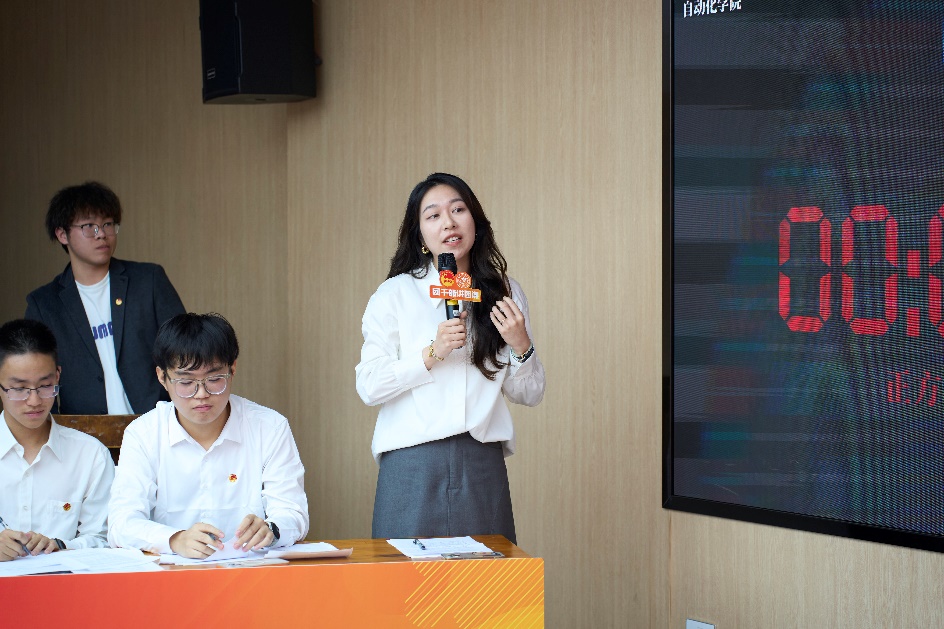 本节团课采用了别样的上课形式,用辩论的形式融入教学,自动化学院及外国语学院的教师团干部、学生团干部齐上阵,共同组成一只辩论队,就“科技创新应该面向现实需要还是注重未来引领”这个辩题展开精彩辩论。来自自动化学院及外国语学院的青马雏鹰班同学、团学骨干、新发展团员、入团积极分子共同组成了观众阵容。形式新颖的团课引起了现场同学的热烈反响,团员青年们在思维碰撞中沉浸式感受双方的观点,完成了一次生动的主题团课教育。现场的团员青年表示,这节团课很有趣,形式新颖,不再是老师单向输出的模式,在辩论的场景下,同学们跟随着辩手的话语交锋,激发了对于科技创新这个命题的思考。