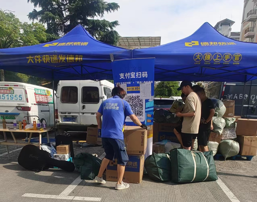 商贸服务部联合菜鸟驿站在生活区5餐门口为毕业生提供优质、快捷和实惠的寄递服务。服务现场提供包装袋、手推车、胶带、泡沫等寄递必须品,并公示收费标准,让同学们寄得放心、寄得安心。同时,商贸服务部开展夏日送清凉活动,凡是与师生驿站打卡合影留念,可在师生驿站领取棒冰一支。