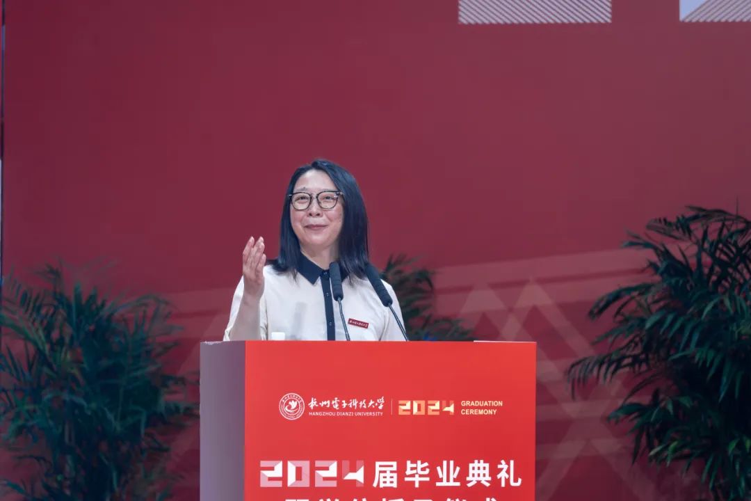“西子湖畔启航,钱塘潮头破浪。笃学力行,志在远方。守正求新,日月华光。忠诚家国担大任,放眼世界竞自强。” 最后,典礼在《杭电之歌》中圆满结束。