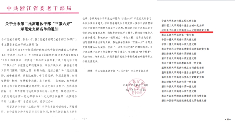 浙江省离退休干部示范党支部和规范化党支部名单公布,我校皆有上榜
