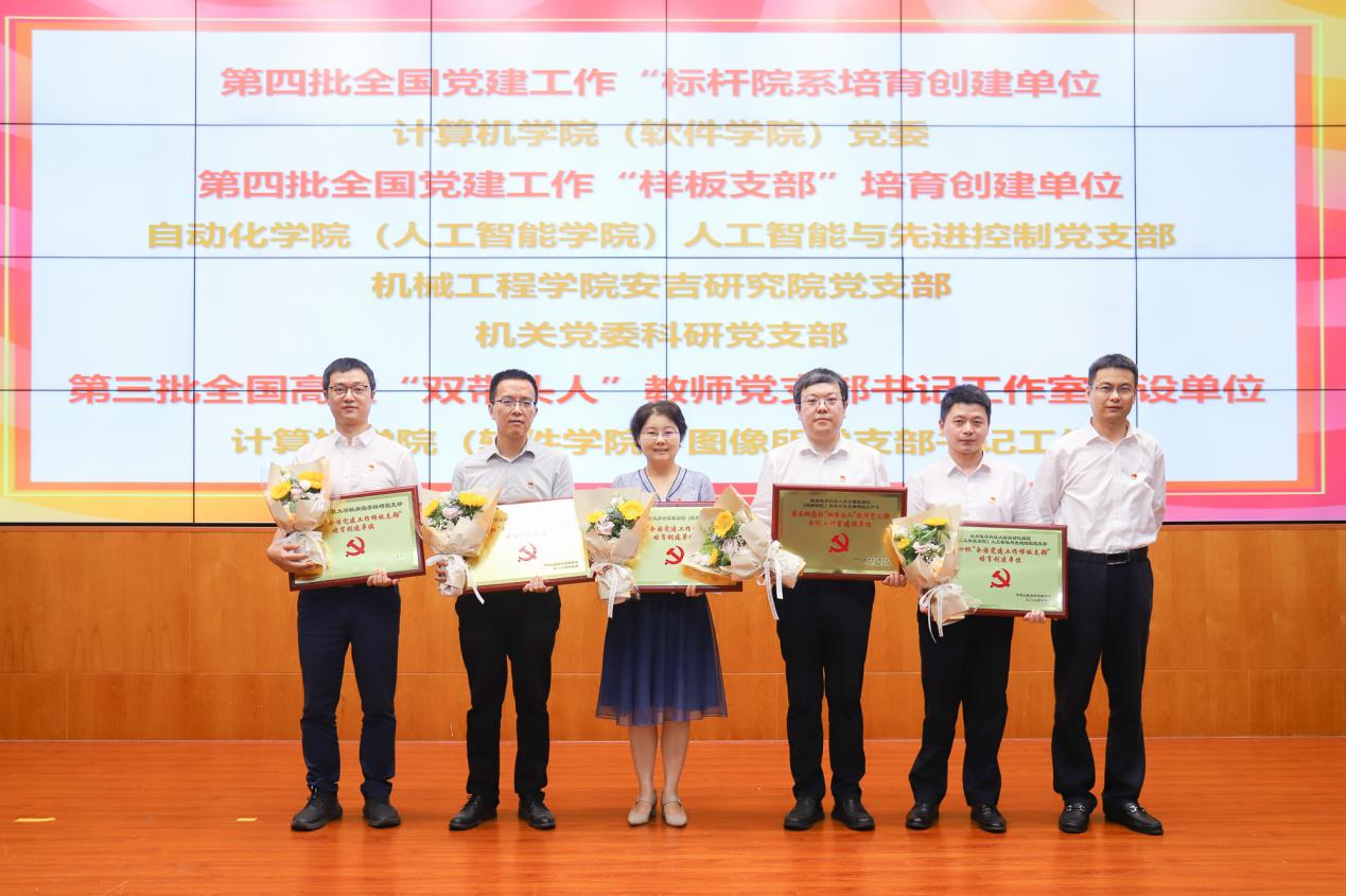 会上表彰了一年来在学校党的建设和改革发展中涌现出的先进集体和优秀个人,包括全国党建工作“标杆院系”培育创建单位,全国党建工作“样板支部”培育创建单位,全国高校“双带头人”教师党支部书记工作室建设单位,校“最受师生喜爱的书记”、校“两优一先”获奖集体和个人等。