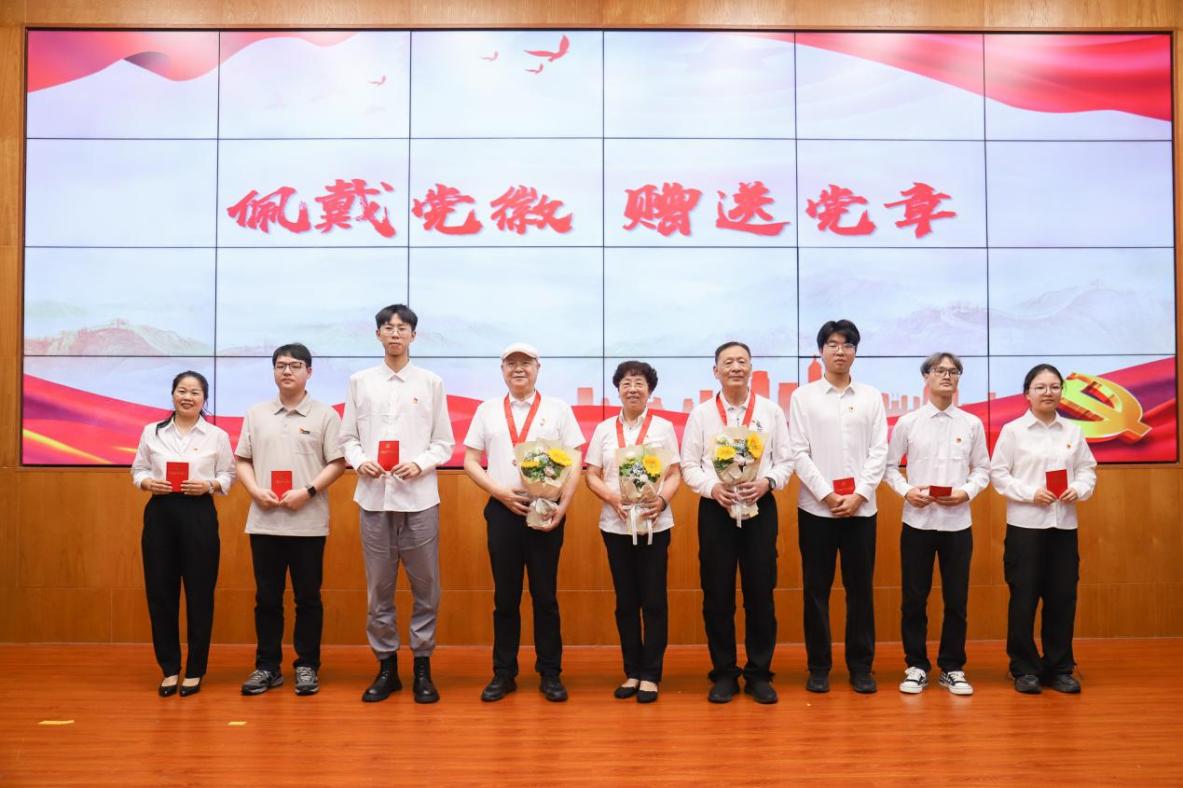 离退休党员为新发展党员代表佩戴党徽、赠送党章。沈峰、吴雪燕、陈垚希、宋树林四位青年党员诗朗诵《红色誓言 百年荣光》,为建党103周年献礼。