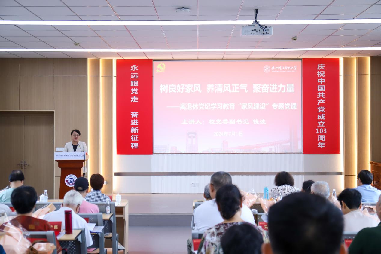 7月1日下午,离退休党委在文一校区隆重举行“永远跟党走 奋进新征程”庆祝建党103周年“两优一示范”表彰大会暨党纪学习教育党课报告会。校党委书记吴卿,校党委副书记钱波,副校级领导郝敬习,学校办公室、文一校区相关部门负责人,离退休党务干部、党员代表出席大会。会议由离退休党委书记、离退休工作处处长王海南主持。