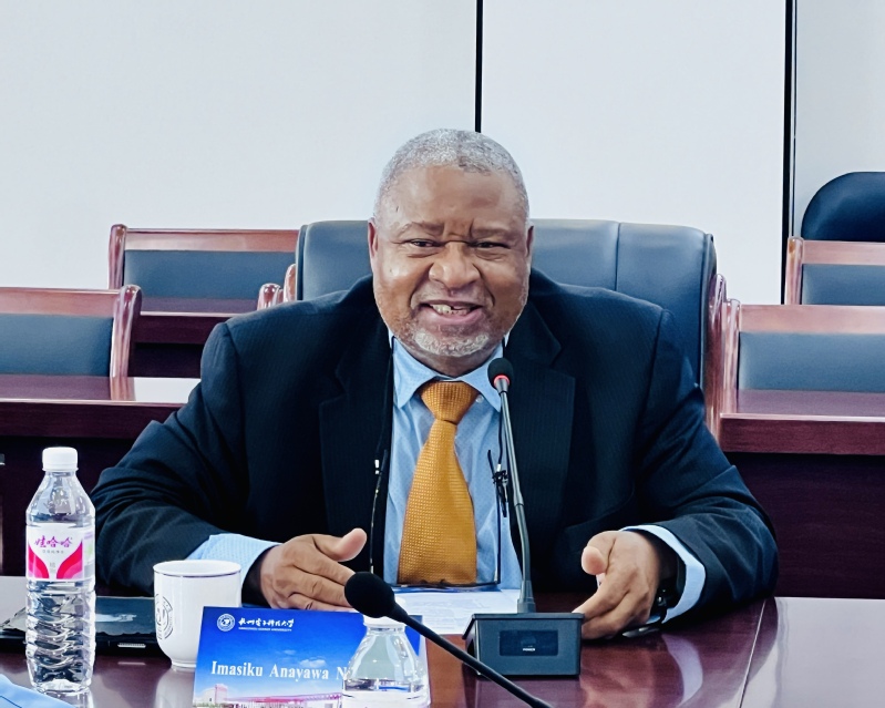 Imasiku Anayawa NYAMBE对学校的热情接待表示衷心感谢,他介绍了铜带大学以及非洲高等教育的相关情况,表示铜带大学非常重视与中国高校的交流,将积极推动双方在相关领域的合作。