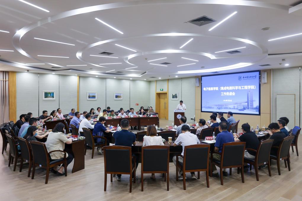 吴卿在会上发表讲话,从三方面对电子信息学院发展提出了新要求:一是提高政治站位,强化责任担当;二是清晰认识时代趋势,关注国家发展战略;三是要战略性地看待发展,扎实谋划学院事业。他勉励电子信息学院认真解放思想,坚持实事求是,统筹协调,全力推动学院各项事业不断迈上新台阶。
