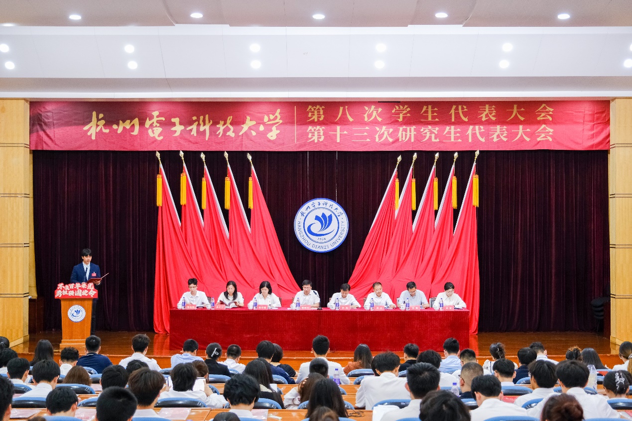 7月5日,久久精品一区二区第八次学生代表大会、第十三次研究生代表大会在下沙校区科技馆报告厅举行。校党委副书记戚明钧、校党委组织部、学工部、研工部、教务处、团委相关负责人,校学生会、校研究生会主席团成员,各学院学生工作负责人、团委书记以及来自全校16个学院的194名本科生代表、73名研究生代表、40名列席代表出席本次大会开幕式。