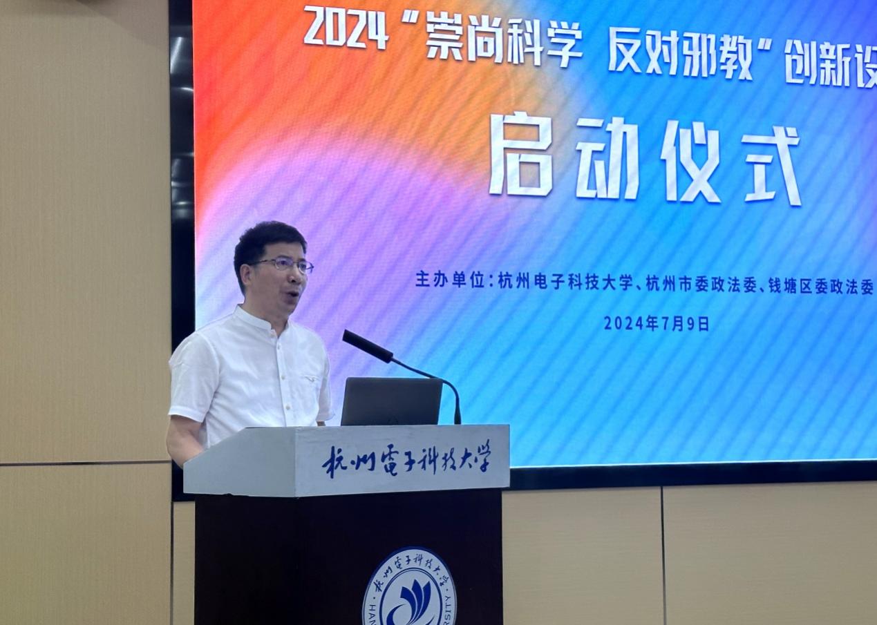 7月9日上午,“崇尚科学、反对邪教”创新设计营启动仪式在科技馆二楼扇形会议室举行。校党委副书记戚明钧,杭州市委政法委副书记张拥军,钱塘区委政法委常务副书记任建国,人文艺术与数字媒体学院、法学院主要负责人,省反邪教文创中心负责人过山,市、区党委政法委有关负责同志以及来自各支持单位老师和学生出席启动仪式。人文艺术与数字媒体学院、法学院党委书记冯瑛主持会议。