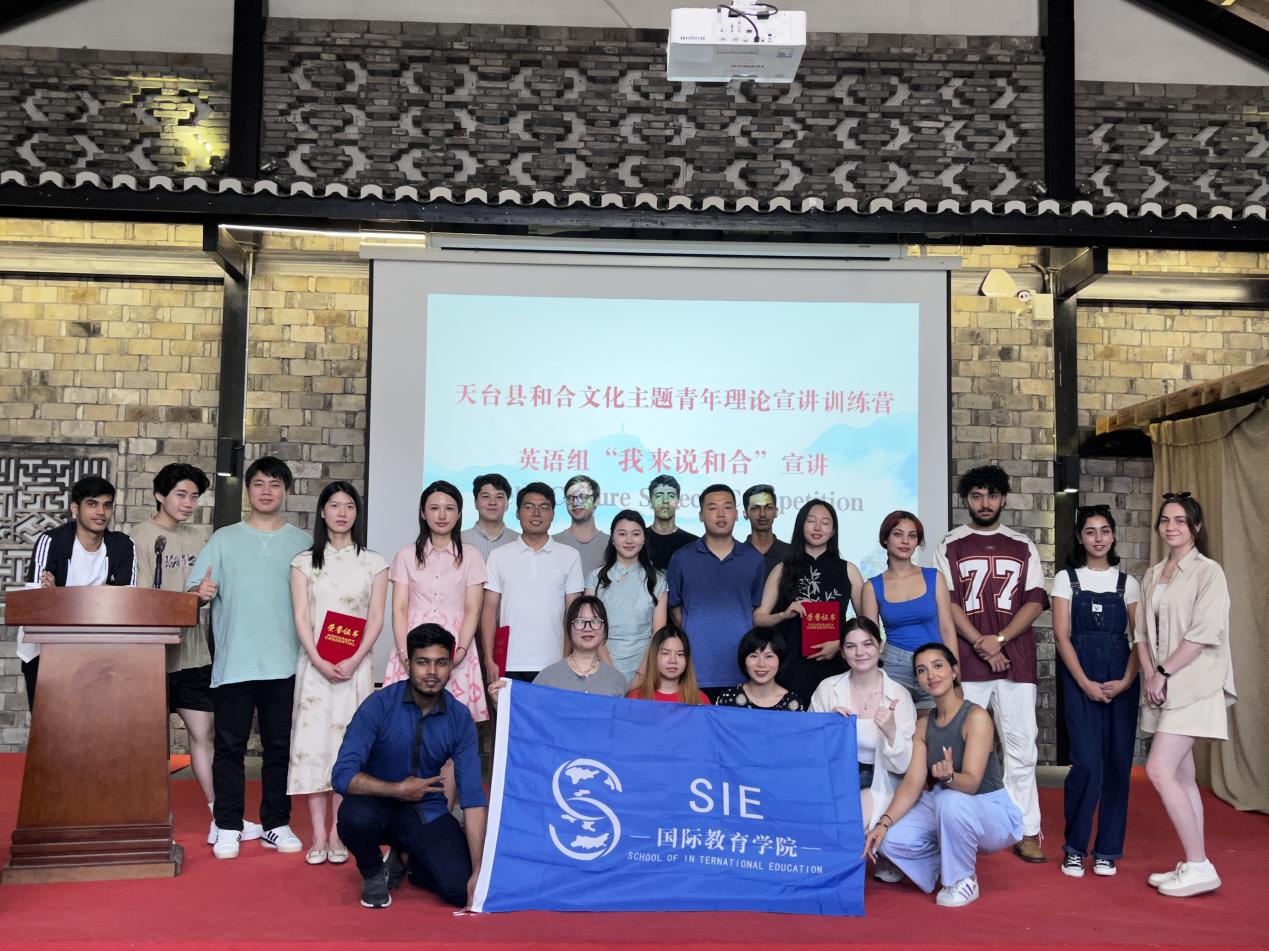 7月5日-7日,受天台县委宣传部邀请,我校国际教育学院组织来华留学生暑期社会实践队走进天台,开展2024年度和合文化国际研修之旅。校党委副书记戚明钧、校团委及国际教育学院相关负责人参加了活动。来自摩洛哥、孟加拉、俄罗斯、巴西、乌兹别克斯坦、印度尼西亚等国的16位留学生代表在天台,通过实地参访、对话工匠、研讨交流、手工制作等形式,沉浸式体验了和合文化的精要,并尝试通过自媒体进行了中华传统文化的国际交流传播。
