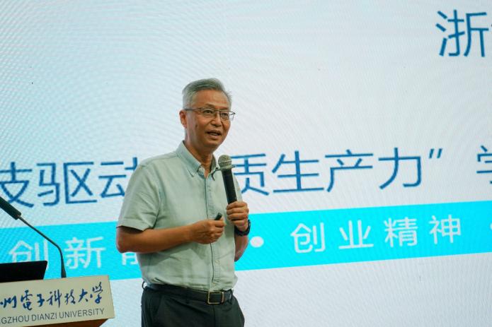 吴卿结合数字科技作为发展新质生产力核心驱动力如何体现担当使命这一重要议题,回顾了杭电在人工智能、集成电路创新及数字人才培养等方面的显著成绩,并介绍了学校近期成立的新质生产力研究院在科学研究、成果转化、产业孵化和人才培育等方面的设想。他指出,此次论坛的目的在于深入探究数字科技如何有效驱动新质生产力的提升,汇集专业见解,分析机遇与挑战,助力构建数字科技时代的高质量发展模式。
