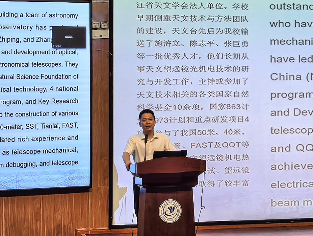 我校作为浙江省天文学会法人单位,一直重视天文技术与方法团队的建设,团队成员长期从事天文望远镜光机电技术的研究与开发工作,先后主持或参加了天文技术相关的各类国家自然科学基金10余项,国家863计划、973计划和重点研发项目4项,参与了我国50米、40米、空间太阳望远镜(SST)、天籁计划、中国天眼以及世界上最大的全向可动射电望远镜(QQT)等望远镜建设。在望远镜机电热设计分析与系统调试、望远镜波束测量等方面取得了较丰富的经验与成果。近两年来,在田海俊教授团队等专家的助力下,我校天文学研究氛围日益浓厚,举办钱塘·天问系列讲坛,邀请了“中国天眼”首席科学家李菂研究员在内的二十余位国家级人才专家来校讲学,进一步加强了天文及天体物理团队的建设。