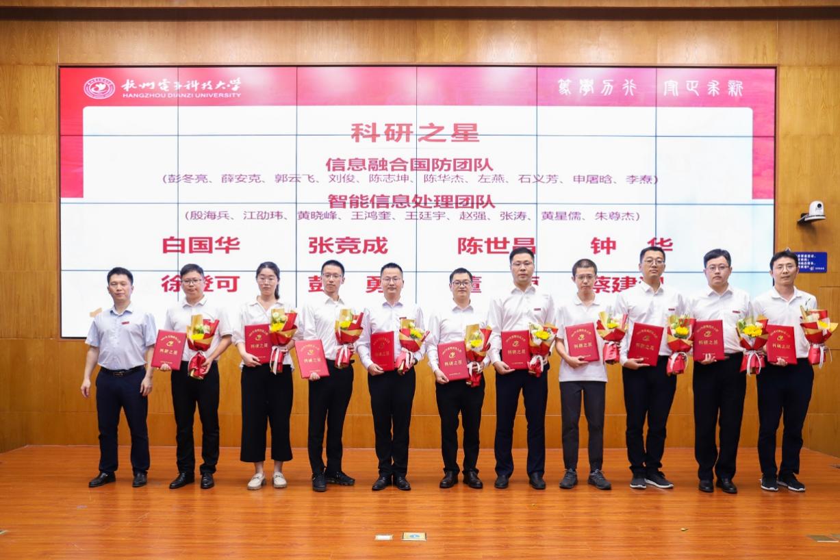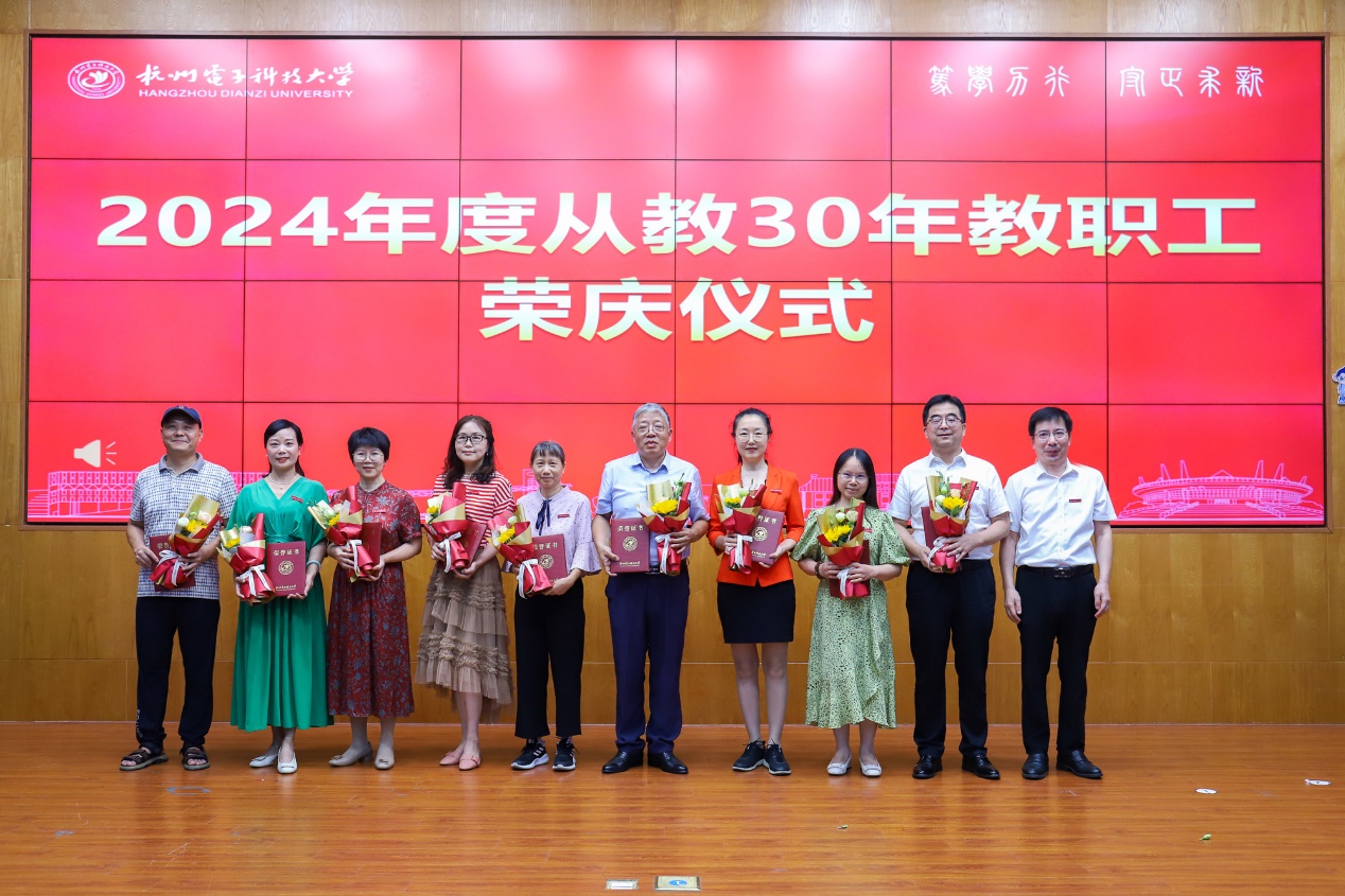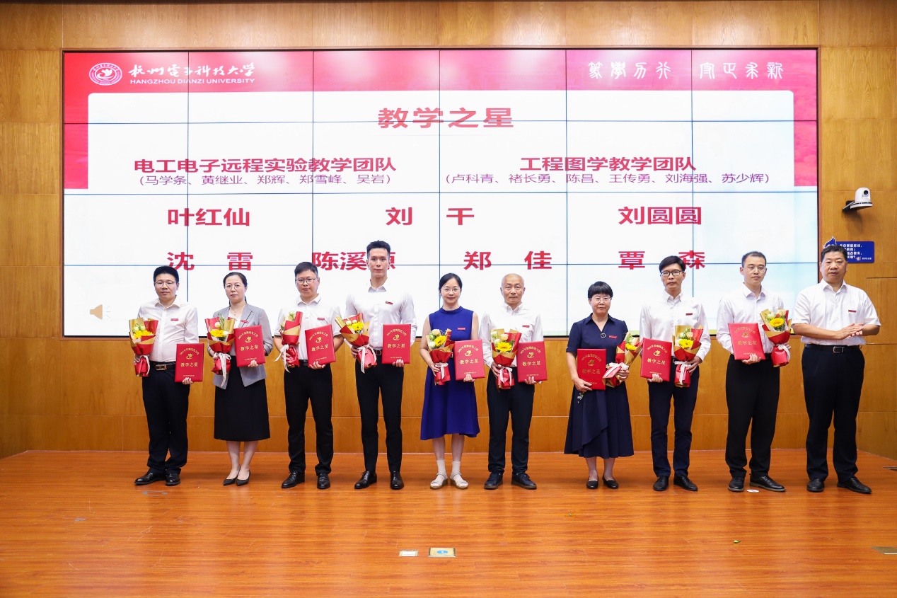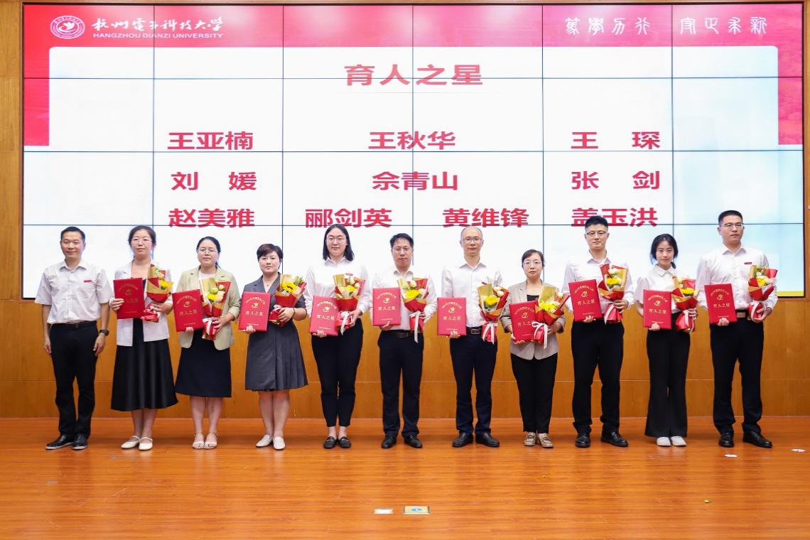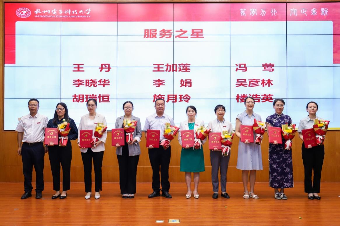会上还对获得2024年“星耀杭电”工程各专项荣誉教师进行表彰,校领导为“教学之星”、“科研之星”、“育人之星”、“服务之星”获得者颁奖并为他们送上鲜花。