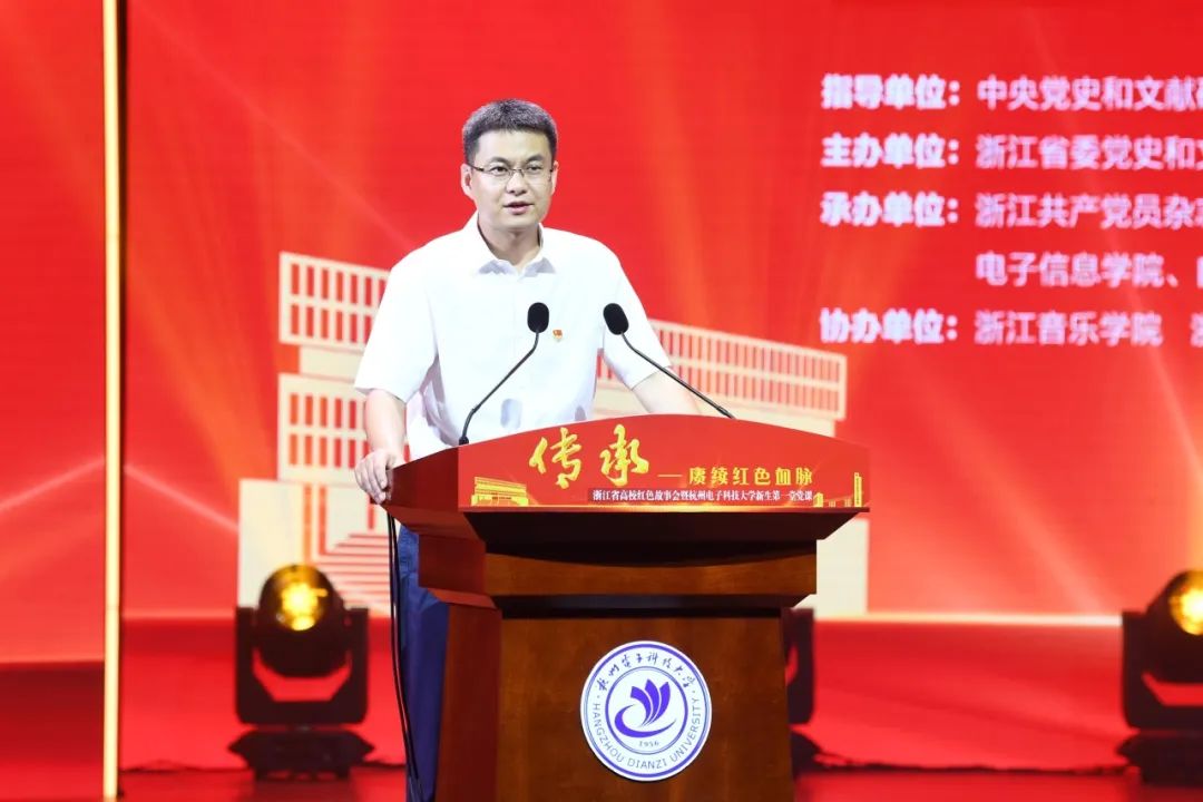 校党委书记吴卿在致辞中表示,“此次活动是用好红色资源、讲好红色故事、感悟红色精神的鲜活体验,是一堂生动的新生第一堂党课。”他希望每位杭电人都能传承红色基因,赓续红色血脉,树立远大理想,厚植家国情怀,勇攀科学高峰,在推进强国建设、民族复兴伟业中贡献力量。