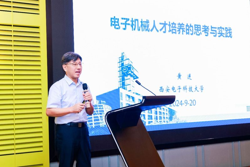会上,西安电子科技大学机电工程学院院长黄进教授作了《电子机械人才培养的思考与实践》的特邀报告。