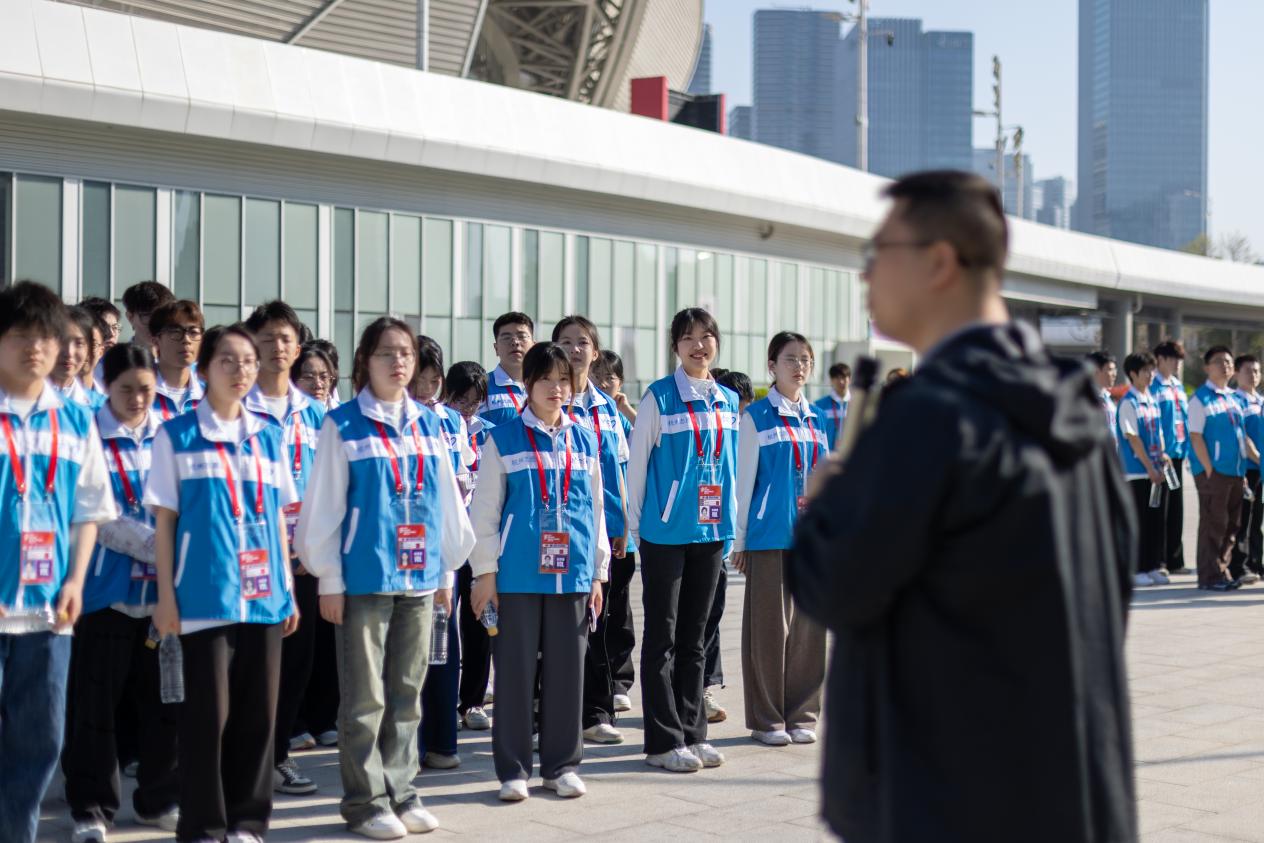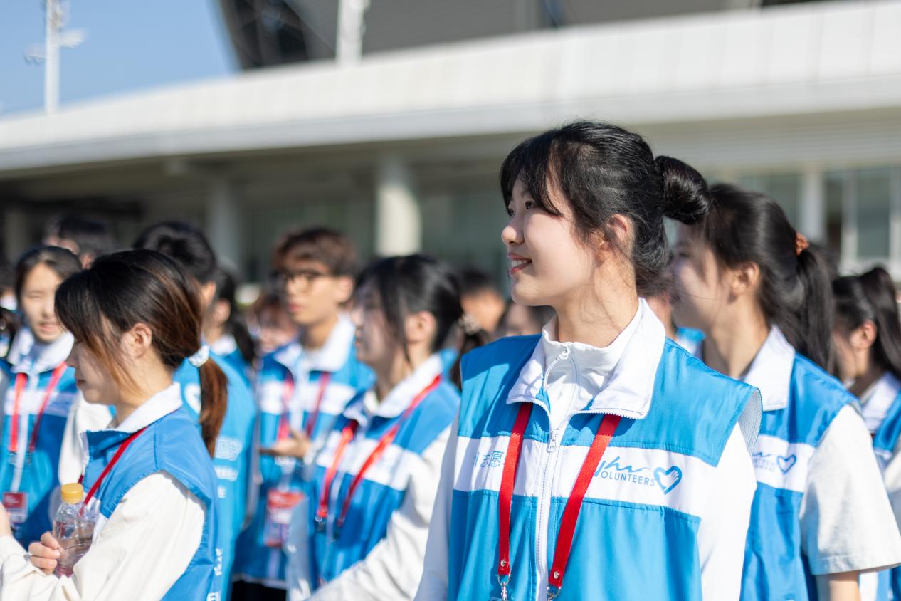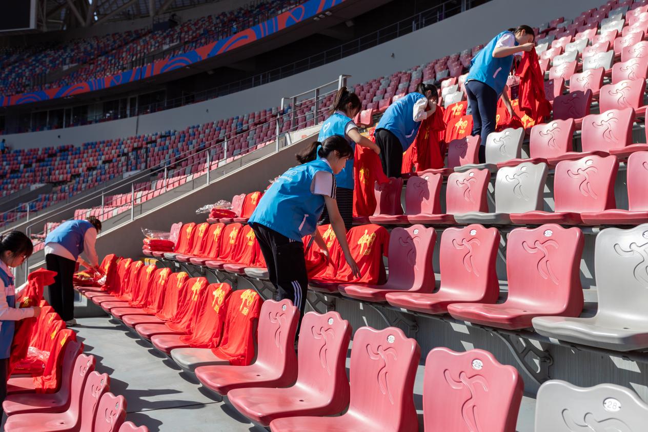 在观众服务领域上,“小青荷”们早早地来到了各自的岗位。在入场高峰期灵活调配人力,通过分区发放、错峰引导等举措,实现5万件应援物资精准派发,确保观众入场“零积压”。从看台指引到应急通道管控,志愿者们以耐心解答和标准手势织就服务网络。