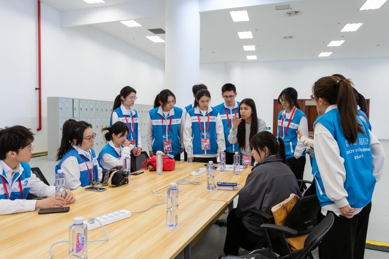 赛事前期,志愿者团队提前完成全流程岗位培训与实地演练。媒体服务领域志愿者通过多轮彩排,精准掌握证件核发、采访区引导等标准化流程,确保赛时媒体工作间、摄影区及混合采访区高效运转。观众服务组144名志愿者联合场馆方,对5万件应援物资进行分装配发规划,按各个入场通道划分发放点位,通过模拟人流高峰场景细化岗位协作机制,为观众入场秩序奠定基础。