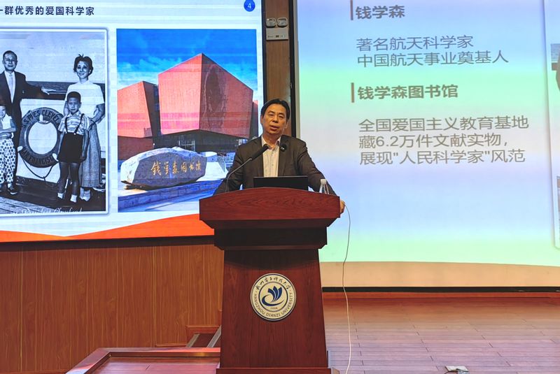 戚明钧深情回顾了杭电老一辈科学家的故事,用实例告诉学生,家国情怀离我们并不遥远,就在我们身边,就在杭电。他叮嘱同学们多读书,积极参与科技竞赛、创新创业实践,关注国家重大科技工程,将个人理想融入时代发展。深切期盼杭电学子能够继承前辈的爱国情怀和奋斗精神,积极投身到国家科技进步的事业中去,掌握先进技术,赋能社会生产力的发展,期待若干年后有杭州“十小龙”“十一小龙”的出现。