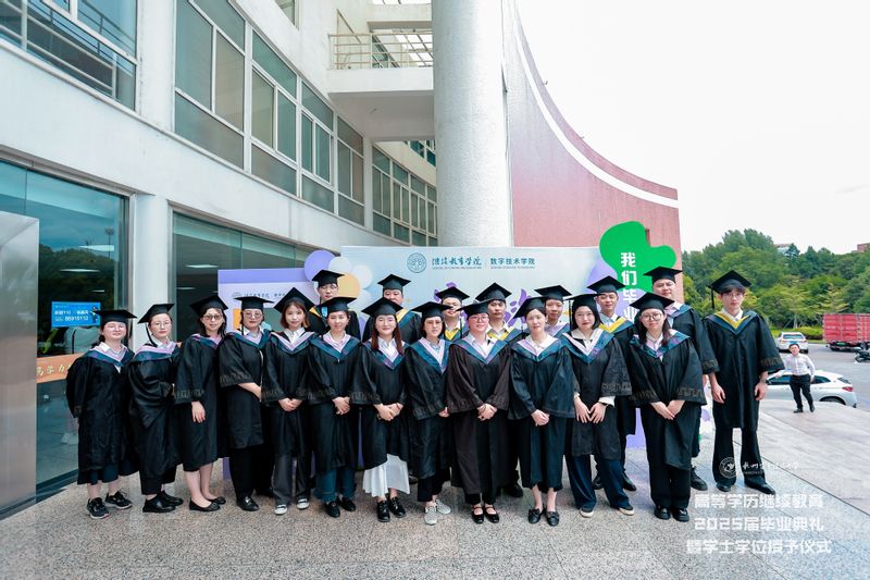 典礼结束后,毕业生们齐聚会场门口,在毕业展板前留念、合影打卡,为他们在杭电的求学之路画上圆满句号。本次毕业典礼还采用图片直播方式,未能返校的同学也在“云端”共享荣光时刻。