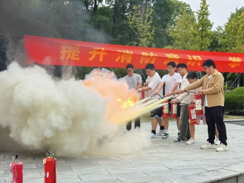 在实操演练环节,安全保卫部模拟火灾现场,组织新生开展应急疏散演练,引导大家掌握低姿弯腰、捂住口鼻、沿安全通道有序撤离等疏散技巧。同时,工作人员现场细致演示了灭火器“提、拔、握、压” 的操作步骤以及消防水带的连接、展开方法,并邀请参训新生代表上前实操。新生们手持灭火器对准 “火点” 精准喷射,在亲身体验中熟悉灭火器材使用要领,真正实现 “学用结合”。