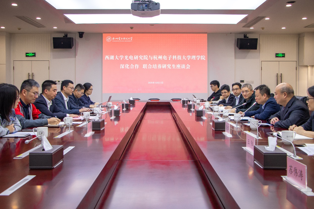 10月22日下午,我校理学院与西湖大学光电研究院兼职导师聘任暨研究生联合培养签约仪式在下沙校区行政楼一楼会议室举行。西湖大学副校长、光电研究院院长仇旻率团到访,我校副校长周青,双方学院党政班子成员、导师代表及联合培养研究生共同见证了这一重要时刻。