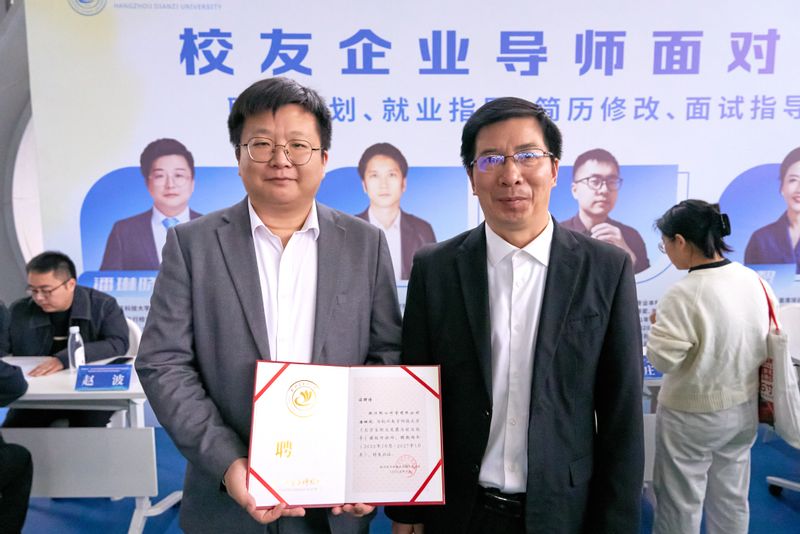 校党委副书记戚明钧在招生就业处负责人的陪同下到现场走访,与用人单位展开交流,深入了解招聘情况与毕业生求职进展。戚明钧表示,要始终坚持以生为本,不断深化就业育人体系建设,持续强化校企合作纽带,积极引导学生服务国家战略需求,投身数字经济主战场,为产业升级与区域发展注入青春动能。活动现场,戚明钧为三位优秀校友颁发聘书,正式聘任他们为学校就业创业校外导师。他们将依托丰富的行业经验与职场洞察,为学生提供更具针对性的职业发展建议,进一步拓展校友反哺育人、协同促就业的新路径。